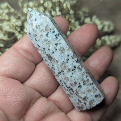 Archangel Gabriel Stone Pillar CRAGWD12. I nicknamed this stone Archangel Gabriel Stone because of its energies of connection to ascended beings and higher wisdom, communication and protection. It is a new find comprised of snow quartz, smoky quartz, blue quartz and black tourmaline. Archangel Gabriel’s name means 'God is my strength'. As the patron of communications, Archangel Gabriel is the messenger angel, acting as a messenger of God. Archangel Gabriel Stone is an energy amplifier, said to bring the energy of the stars into the soul. It is considered a stone of harmony, and is thought to facilitate communication with spiritual and other-worldly masters, teachers, & healers. It can be programmed as a constant prayer or intent generator. It transmutes negative energies in one’s environment. It is a good stone for “keeping things clear” by purging the atmosphere of unspoken resentments or suppressed conflicts. By balancing the Throat Chakra, it enhances communication between upper and lower Chakras, angelic beings, and ascended masters. It also helps to improve one's communication skills, including not only communication with others, but also communication from the ascended to the spiritual self. It also clears the energy systems of any thoughts or psychic debris that could cause blockages or imbalances if allowed to remain. It is a process of "energetic housecleaning" that is vitally important to anyone who strives for connection to their spiritual path. 88mm x 29mm x 24mm