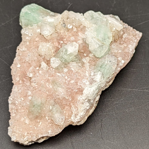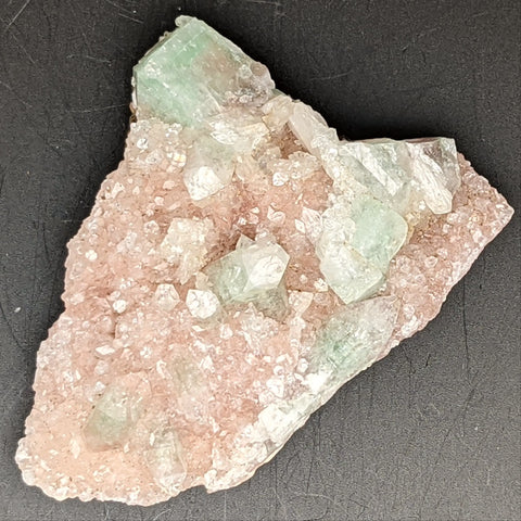 Green Apophyllite & Stilbite Specimen~Pune, India~CRGAPOS3. Green apophyllite can assist one in animal communication, opening the psychic channel whereby one can interact with both individual animals and the collective minds of entire species. Meditating with them can open one’s perception to seeing and interacting with Nature spirits, devas, fairies, and the plant kingdom. They can also be used to connect more deeply with other crystals and minerals. It is ideal when working with portals and dimensional doorways. It can help one become more sensitive to these natural openings between dimensions as they occur in vortices and other “power spots”. Stilbite, when used in meditation, can bring about a gradual expansion of the sense of self, starting in the heart center and gradually increasing until one has grown past the confines of the body, becoming a sphere of awareness no longer limited by the laws of physics, yet still connected by a cord of Light to the physical body. The expansion it provides is so gentle that one can easily fall into bliss and not fully realize fully what has happened. It allows one to approach one's tasks with an organized and positive frame of mind. It balances hemispheric brain function, facilitating a whole brain approach to challenging mental tasks. 78mm x 65mm x 31mm