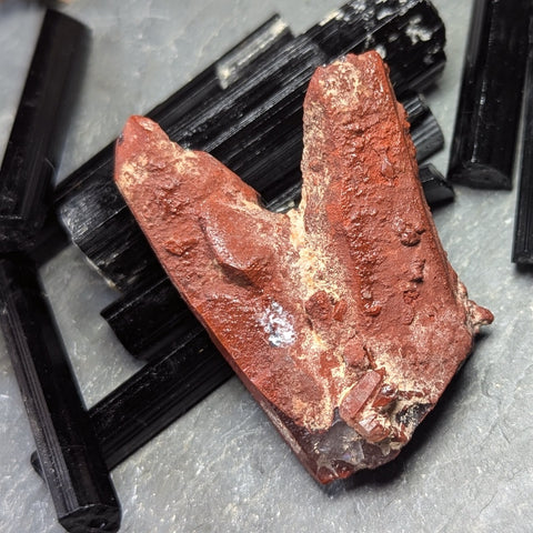 Red Hematoid Quartz Cluster~Tarya Mine, Morocco~CRRHQM15. Red Hematoid Quartz is the ‘Stone of the Seeker’, a key to open many doors within and all around, a stone that can be called upon when seemingly all else fails, or when there is confusion of what other crystal or mineral to connect with, it attracts its keeper to genuine source, a stone that helps stop one misjudging, as well as being misjudged, helps one to stand out of the crowd, to be different in a positive way, said to help diminish and lower negative and harmful rays or frequencies such as electro-magnetic fields and frequencies, also known as EMF. 55mm x 38mm x 24mm