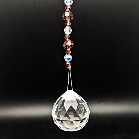 Suncatcher #4 Ruby Slippers~SUNCATRS. Beautiful red, clear aurora borealis rainbow and clear faceted ball sparkly Suncatcher. 12 1/2 inches long.
