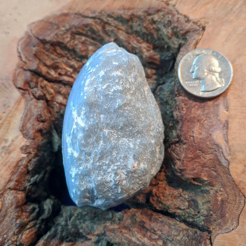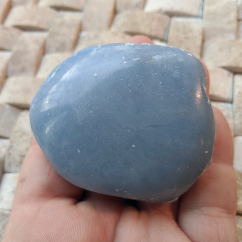 Angelite Chunk-Polished Face~CRANGC05. Angelite (Anhydrite) is a stone of guardian angels. It is considered a stone of serenity, guidance, intuition, and benevolence. It is said to help one help one tune into past lives information and to the akashic records. It is said to assist one in releasing resentment and grudges. Angelite is considered a stone of self worth and self acceptance. 70mm x 57mm x 42mm